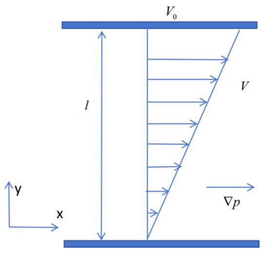 Couette flow is also a classic plate flow, where the entire flow field is generated by the shear motion of the upper layer of fluid. It is the simplest moving boundary problem, representing the laminar flow between two parallel plates in relative motion, driven by the viscous forces acting on the fluid and the external pressure parallel to the plates. The analytical solution of Couette flow can be referred to in Morris’ literature [20]. The distribution of velocity in the x-direction is given by the following equation: