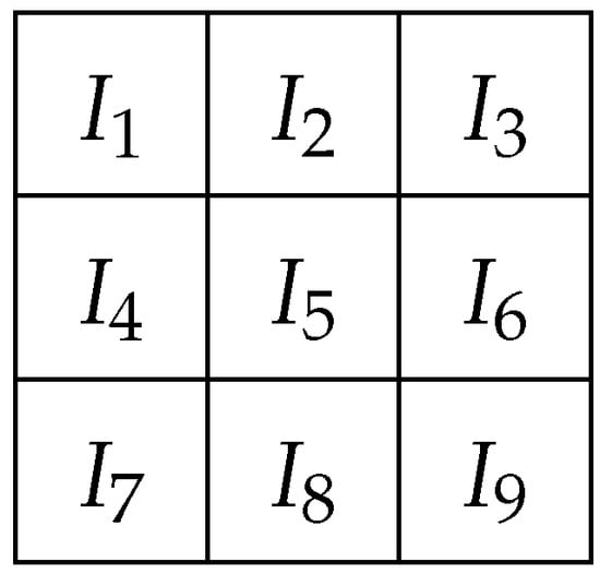 The procedures for obtaining the high-order approximation values of by the unequal-sized WENO spatial reconstruction are given in this subsection. To facilitate presentation, as shown in Figure 1, we rename cell and its eight adjacent cells as .