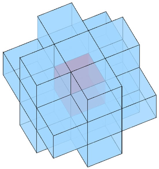Stencils of target cell (red cubic) for 3D spatial reconstruction.
