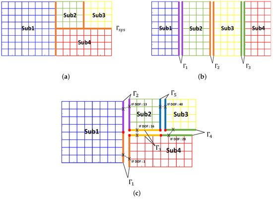 The interface is individually defined as a single set by the interface discrimination algorithm introduced in the above subsection. This implies that the proposed method conducts the secondary eigenvalue analysis to a partially synthesized system. In this section, the interface reduction process is described, and the jth localized interface Γ j is presented in Figure 2 for comprehensive understanding.