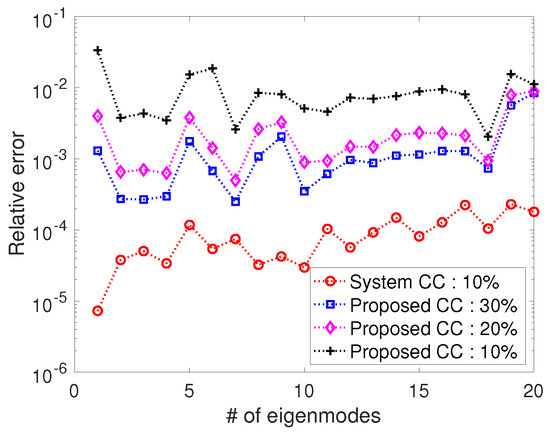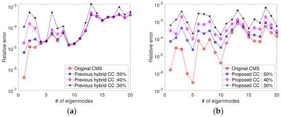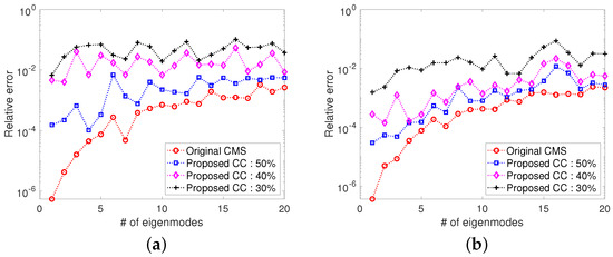 Figure 5. Error verification with respect to the proportion of CC modes. (a) Designated substructuring plate; (b) METIS substructuring plate.
