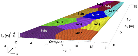 The main advantage of component mode synthesis (CMS), which stands for dynamic substructuring, is that the entire system is divided into multiple independent subsystems, and model reduction is performed at a substructural level. Therefore, design modification can be practically reflected without requiring full-system analysis with respect to design-variable changes. Based on these concepts of domain decomposition, Hurty [12] was initially conceptualized by applying normal, rigid-body, and constraint modes within the finite element modeling (FEM) framework. Subsequently, Craig Bampton [13] discovered that the treatment of interface can be simplified by considering rigid-body and redundant modes in the same manner. Bennighof and Lehoucq [14] formulated an automatic multilevel substructuring method to achieve high dimensional reduction with a similar accuracy level as modal truncation. In addition, proper consideration of residual substructural modes based on a Craig Bampton (CB) method has been suggested for enhanced accuracy by Kim [15]. The efficiency and accuracy of CMS methods are demonstrated in [12,13,14,15,16,17,18].