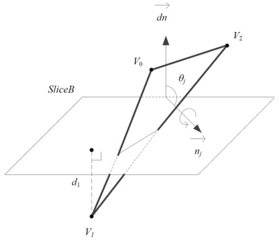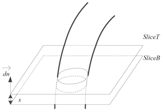 As shown in Figure 6, if the last pre-slicing plane is marked as SliceB, and if the current is SliceT, they will be related according to Equation (6), and the minimum values of Equation (4) for both SliceB and SliceT are marked as Equations (7) and (8), respectively.