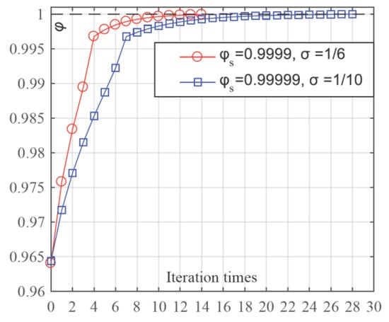 In all, for a certain Φs, too great a σ value will cause the convergence of the iteration to fail; when the convergence is valid, the iteration result will be almost the same for different σ values; a smaller σ will cause more iteration steps.