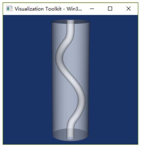 As shown in Figure 17, the model was a Φ50 mm × 150.83 mm column outside with a compound inner runner inside, which was composed of two parts of straight runners at both ends, a three-dimensional spiral runner in the middle, and smooth transitions among the three parts. The diameter of the spiral runner was Φ10 mm, the diameter of the spiral was Φ30 mm, the rotation angle was 330°, and the pitch was 110 mm; the diameter of the inner straight runner was also Φ10 mm and the length was 10 mm.