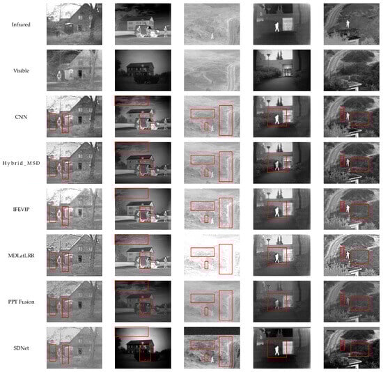 It is known that infrared sensors exhibit a superior capability to capture heat radiation targets, demonstrating robust anti-interference properties when detecting hidden or camouflaged objects. However, they display a less powerful capacity for capturing texture information and structural features [1]. Conversely, visible light sensors excel in capturing background information, texture details, and structural features of the target. However, they are incapable of highlighting the target and are readily susceptible to environmental (weather-related) changes [2]. Taking the strengths and weaknesses of infrared and visible light sensors into account, it is common to use image fusion algorithms to combine their advantages. This approach leverages their individual strengths, leading to better overall results. Images melded together often align more closely with human visual perception, thereby finding applications in related sectors such as image segmentation [3], biometric recognition [4], object detection [5], and object tracking [6]. Concurrently, the fusion of images can also provide increased data support for domains like video surveillance [7], military [8], and medical [9].