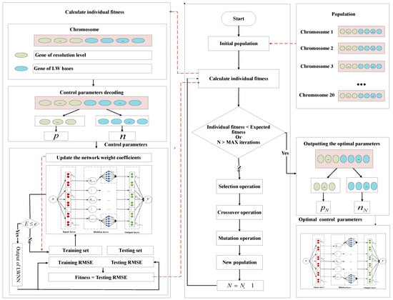 Section 3 uses the simple Genetic Algorithm to optimize the order of the adopted LW bases and the resolution level. Then, the weight coefficients of the optimal LWNN structure are learned by the improved gradient descent algorithm. Finally, the detailed flowchart of the proposed method for identifying the nonlinear dynamic system is described. In