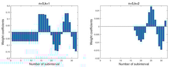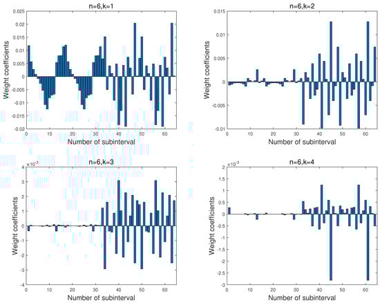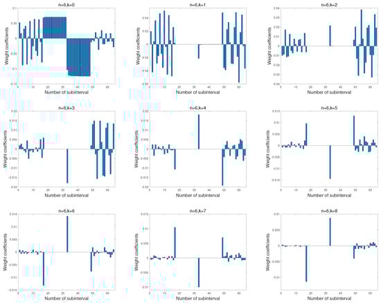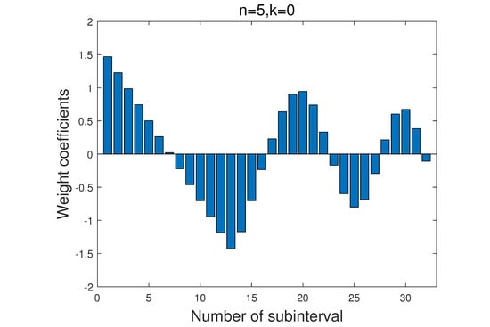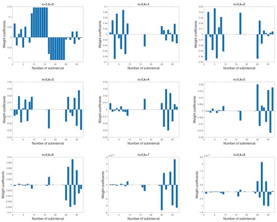 th subintervals, respectively. Correspondingly, the network weight coefficients of LWNN have a sudden variation in the positive and negative values at the step points. Similarly, the ramp feature at the point