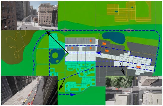 To validate all the proposed methods, we established a standardized visual perception benchmark using CARLA. The evaluation scenario map of Town 12 from CARLA Leaderboard 2 was chosen for this purpose (Figure 3). This city consists of various contrasting regions, including urban, residential, and rural areas, with a surrounding highway system and a ring road. The architectural styles in the city resemble those commonly seen in medium to large cities worldwide. In our study, we focused primarily on urban scenes and selected a fixed number of road participants, such as vehicles of different types and colors. The proportions of these vehicles were determined based on a relevant survey. Additionally, the traffic participants and the ratios of cars to trucks and vehicles to pedestrians were designed accordingly. The scenario’s roads encompassed various types of lanes, road markings, traffic lights, signage, and even different weather conditions (Table 2). In this scenario, the vehicle travels along a fixed route at a fixed speed for a total distance of 5 km. It is equipped with a visual perception sensor that needs evaluation. The vehicle traverses alongside the set-up traffic participants, which are equipped with their respective motion states, during the entire journey.