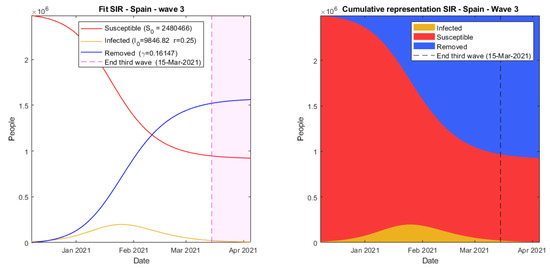 Appendix A shows the posterior histograms of the model parameters for each of the models and COVID-19 waves. These histograms account for the uncertainty analysis (model appraisal) of the inverse unknowns: initial population, growth rate, maximum population infected (in the case of Verhults’s and Gompertz’s models), and for the SIR parameters via the Metropolis–Hastings algorithm. As can be observed, all the models provide very consistent results. Therefore, the conclusions achieved by the posterior analysis are similar.