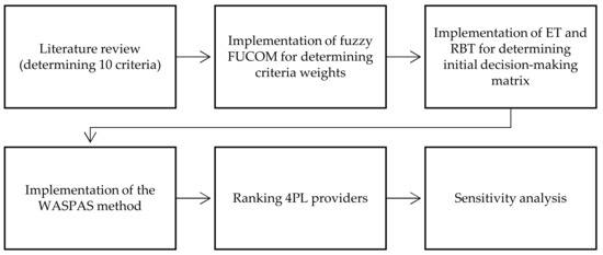 All of the above clearly indicate the limited application of traditional and standard decision-making models and point out the need for the development and application of new integrated approaches that adequately treat this issue. It is evident that such approaches and models are missing in the available literature, especially in practical applications. The main motivation for writing this paper was to fill the perceived gap, where the authors tried to propose a new hybrid approach and model for evaluating a resilient 4PL provider for e-commerce needs, based on fuzzy FUCOM-ET-RBT-WASPAS methods. The first method was used to obtain criteria weights, while ET and RBT were used to construct the initial decision-making matrix used in the WASPAS method. The model was tested on a concrete example for the evaluation of five global 4PL providers based on 10 criteria. The proposed and applied hybrid approach, on a concrete example, represents the main scientific contribution of this paper. In addition, a significant contribution of this paper is reflected in the fact that it connects very current and important aspects of the global supply chain, such as e-commerce, resilience, and the possibility of improving the delivery of online ordered products by 4PL providers.