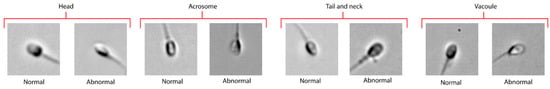 - Ghasemian, F.; Mirroshandel, S.A.; Monji-Azad, S.; Azarnia, M.; Zahiri, Z. An efficient method for automatic morphological abnormality detection from human sperm images. Comput. Methods Programs Biomed. 2015, 122, 409–420. [Google Scholar] [CrossRef]