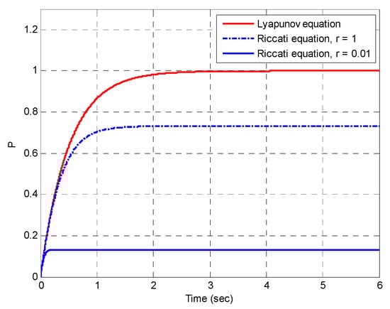 The Riccati equation deteriorates to the Lyapunov equation given by the following: