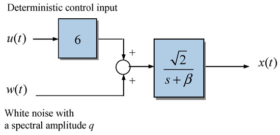 Block diagram of Example 2: the scalar Gauss-Markov process with a deterministic control input.