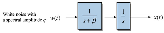 The integrated Gauss-Markov process shown in Figure 14 is frequently in engineering applications. By defining two state variables, and , the corresponding continuous model is as follows: