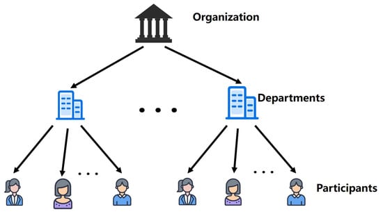 An organization uses the GSH protocol in scenarios where n groups working within the organization. An organization authority (OA) manages the groups, while an individual group is managed by a group authority . GAs can register and revoke membership. The users in group are referred to as group members of . Furthermore, the GSH protocol participants are referred to as players or participants. Moreover, we call the group members legitimate participants. We give the system model in Figure 1.