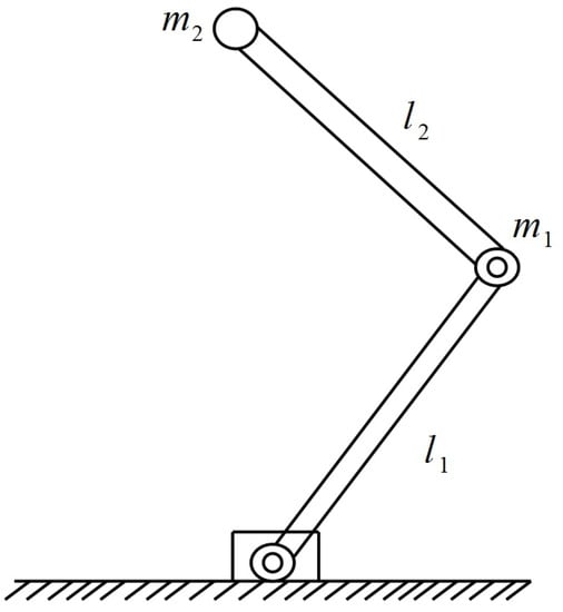 Suppose the two-link manipulator with pivot joints of Figure 3. The link lengths of the manipulator are and and the link masses are and , with these masses concentrated at the end of each link.