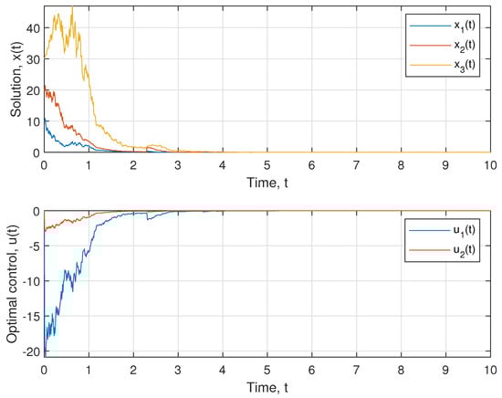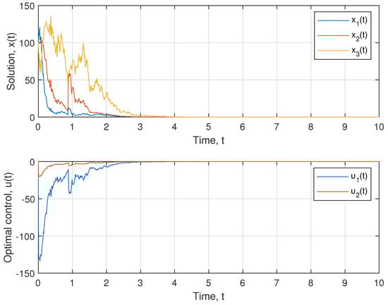 For simplicity, we will assume that the random variables are constants and the solution, , and optimal control, , depend only on the random process, .