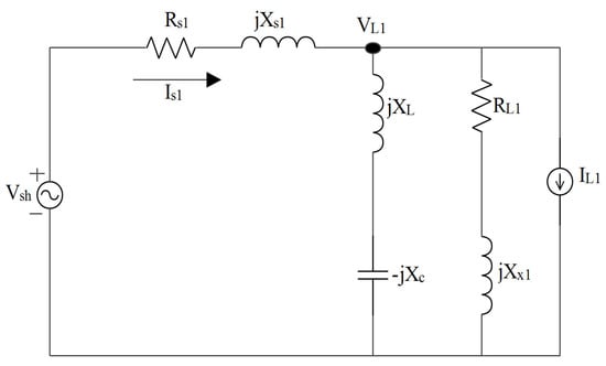 Single-phase equivalent circuit at fundamental frequency (h = 1).
