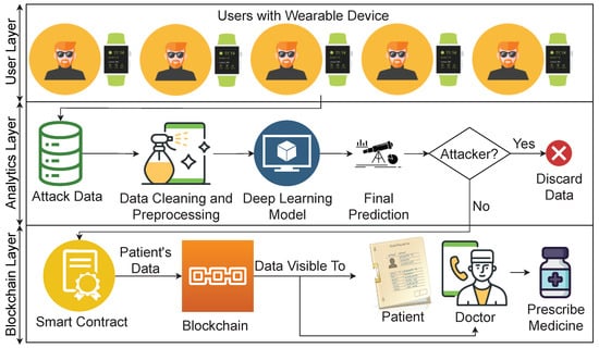 AI; LSTM; smart contract; blockchain; cybersecurity; smart healthcare; wearable technology; deep learning MSC: