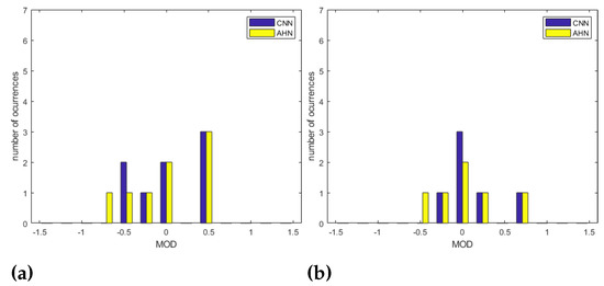 Table 6 shows the performance of the AHN model using as input the Magnified videos (MV). The subject and his pose are listed in the first two columns. In columns three and four, the estimation (Equation (16)) and the corresponding reference are shown. Finally, column five shows the defined in Section 2.3.2. On the other hand, similarly, Table 7 shows the performance of the CNN model using the Magnified components videos (MCV). The PE is shown in the last column. Additionally, Table 8 shows the average of the in the first row for the CNN approach applied to the OV (), the MCV () and the MV () and in the second row for the AHN approach applied to the OV (), the MCV () and the MV ().