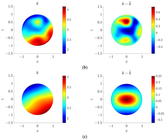 Boundary solution for the 3D parameter identification problem in spherical domain under different discretizations: (a) ; (b) ; (c) .
