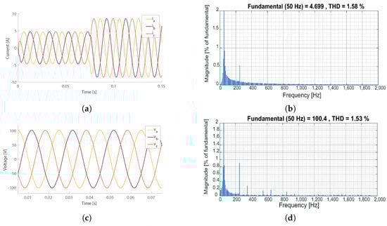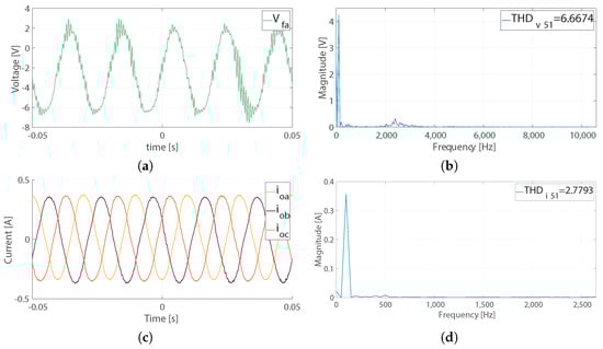 The signal x in Equation (5) can be referred to as voltage or current signals. Consequently, expressions for the three-phase voltages v and currents i are as follows: