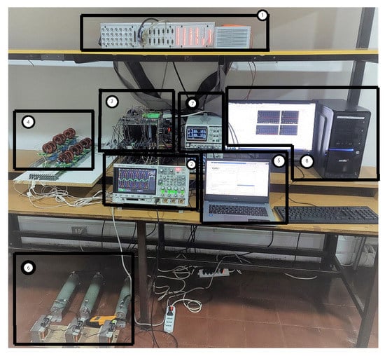 The power converter used in this research corresponds to a DC–AC-type power converter. This voltage source inverter has three legs, each with two power switches, MOSFETs. A diagram of the two-level three-phase VSI can be seen in Figure 2.