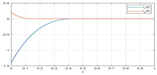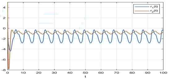 According to Theorem 3, we can obtain that and ; thus, we have Then, choose and ; the error systems with the controller are shown in Figure 7,and the settling time It is easy to observe from Figure 7 that the drive-response MINNs (16) and (17) are successfully synchronization in the finite time with the controller (10); thus, the practicality and validity of Theorem 3 are shown.
