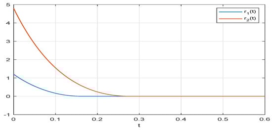 Obviously, and . Based on Lemma 2, one has . Compared with the Lemmas 1 and 3, the derivative of the Lyapunov function in Lemma 4 does not need to have exponential terms, and the settling time is more concise and easy to test. In addition, the FTS theorem in [49] requires that the Lyapunov function satisfies and the settling time is . Obviously, if setting , then Lemma 4 is reduced to the FTS lemma in [49]; thus, Lemma 4 is a strengthened result. Moreover, i.e., Lemma 4 can provide a tighter estimate value of settling time than FTS lemma in [49].