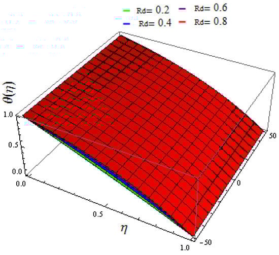 - The temperature field exhibits a rising behavior for increasing values of the thermophoresis factor, Brownian motion, and thermal radiation factor;