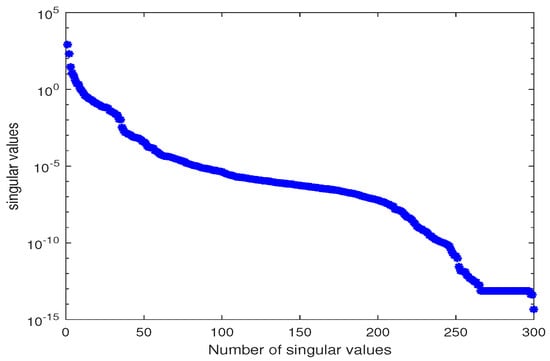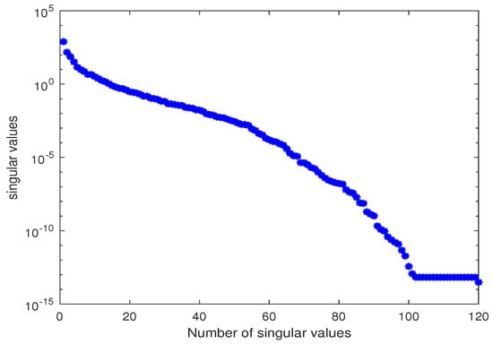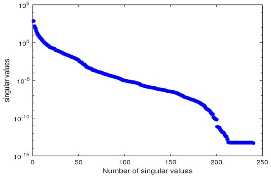 To obtain a reduced basis, one can use the eigenvalues of the correlation matrix as in [24,25]. Since the eigenvalues of C, and the singular values of X are related as , we use a singular value decomposition (SVD) to compute the singular values of X instead.