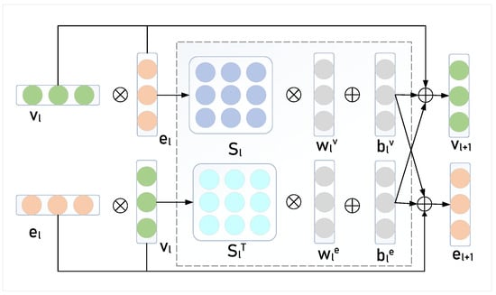 Among them, . Through this interaction process, the information between the item and the entity is shared, and the feature interaction is displayed and modeled. Using this matrix as the input of the next layer of interaction, the process is as follows: