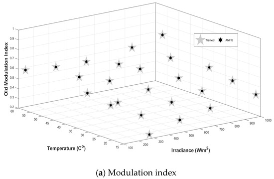 The optimum modulation index is obtained first by iterative Equations (1)–(3) and (12). It is noted that these equations are non-linear, resulting in a complex mathematical model. Alternatively, ANFIS is used to estimate the optimum modulation index Mop accurately and adaptively.