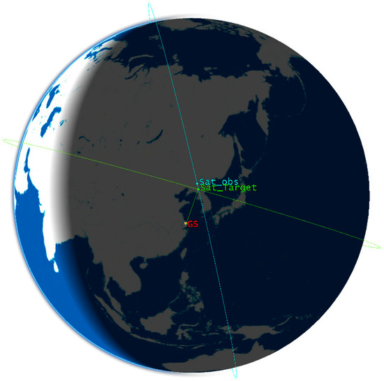 where Ω, , , , and are the right ascension, horizontal velocity, inclination, semi-major axis, and eccentricity of the ascending node of satellite Sat_Target and satellite Sat_Obs, respectively. Re is the Earth’s radius, and J2 is the J2-perturbed parameter.