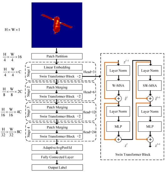 When the radar line of sight is fixed, the attitude angle has a one-to-one correspondence to the enhanced ISAR image. Therefore, this study used the swin transformer to learn the mapping relationship.