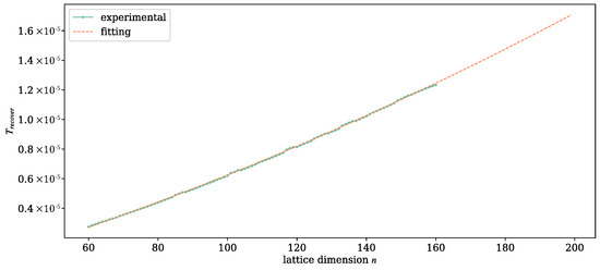 Random lattice: The formal definition and generation algorithm of a random lattice can refer to Goldstein and Mayer’s work in [26]. The SVP challenge also adopts the Goldstein–Mayer lattice. The lattice of an n-dimensional SVP challenge instance has a volume of about .