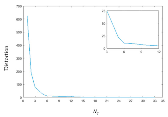 To set , the number of clusters, is used, which is referred to as distortions, where ci is i-th cluster’s centroid, and indicates an individual, x, in the i-th cluster, . The lower the distortion, the tighter the cluster members, and the higher the distortion, the looser the cluster structure. When seeking the appropriate number of clusters, r needs to be smaller.