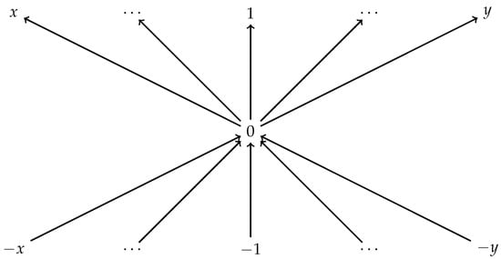 In the case of stringent real hyperfields, we obtain a linear order by Proposition 10. The directed graph obtained in this case can be found in Figure 1 below.