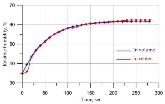 Using the Mendeleev–Clapeyron law (7) for a fixed temperature, relative humidity can be expressed in terms of mass fractions of water vapor. Thus, for the mass fractions shown in Table 2 and the temperature of 14 °C, the relative humidity is 92.2%.