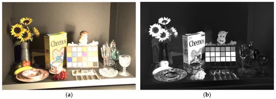 - Debevec, P.E.; Malik, J. Recovering high dynamic range radiance maps from photographs. In Proceedings of the ACM SIGGRAPH 2008 Classes on—SIGGRAPH ’08; ACM Press: New York, NY, USA, 2008; p. 1. [Google Scholar]