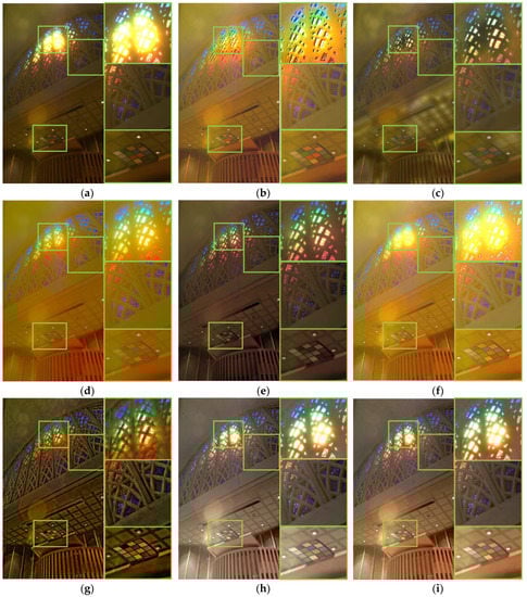 - Kwon, H.-J.; Lee, S.-H.; Bae, T.-W.; Chae, S.-M.; Park, M.-H.; Sohng, K.-I. Compensation of de-saturation effect in HDR images based on real scene adaptation analysis. In Proceedings of the International Conference on Image Processing, Computer Vision, and Pattern Recognition, IPCV 2011, Las Vegas, NV, USA, 18–21 July 2011; Volume 2, pp. 786–790. [Google Scholar]