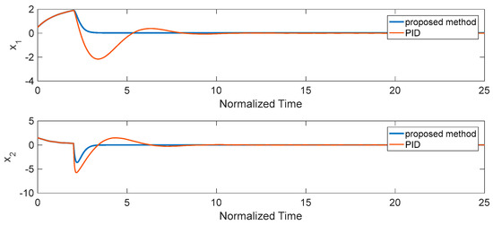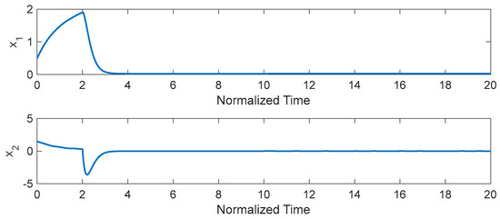 In this section, the numerical simulation for the stabilization of the nano-beam is demonstrated using the proposed control scheme. For numerical simulation, the parameters of the nano-beam are ; consequently, the exact value of the parameters that appeared in (38) is obtained as , , and [15].