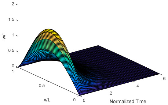 Substituting Equations (36) and (37) in Equation (34), multiplying both sides of Equation (34) by , and by calculating the integral over the length of the beam, the ordinary differential equation (ODE) will be obtained as follows: