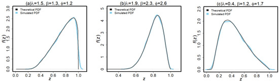 where , and are shape and scale parameters, respectively. Mazucheli et al. [1] showed that UG provides better fits than the beta and Kumaraswamy distributions. It can also be used as an effective model for fitting skewed data.
