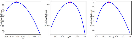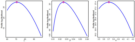 Unimodal profile likelihood functions of parameters of HLUG-TI for Data I.