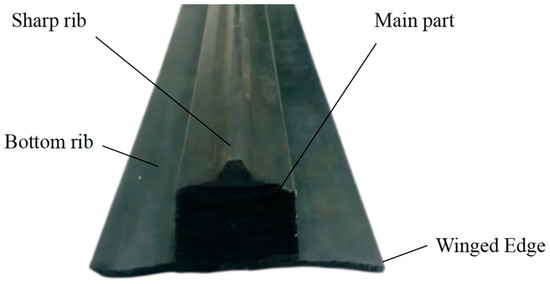 As shown in Figure 3, the traditional GINA gasket is made of rubber with a sharp rib, main part, bottom rib, and winged edge [10]. This type of GINA gasket is widely used in the Pearl River Immersed Tunnel and the Hong Kong–Zhuhai–Macao Bridge Immersed Tunnel.