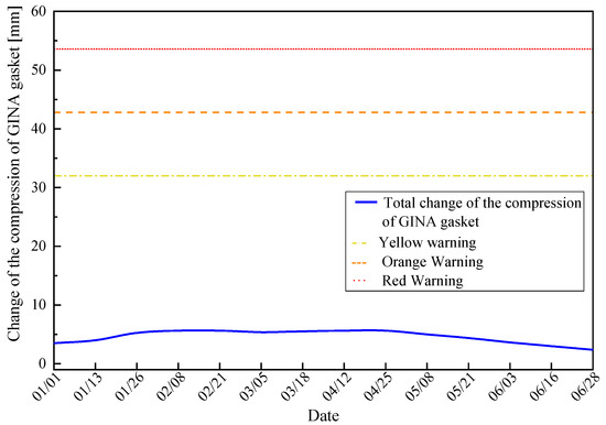 The summation of () is assumed to be equal to the total change of the GINA gasket . Then, the total change of the GINA gasket varying with time is calculated by the monitoring data, which is shown in Figure 16.