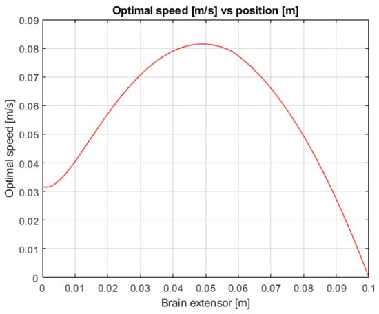 The authors imposed further boundary conditions. The first condition ensured that the final position of the robotic brain retractor was the desired position. The second condition was that the final speed had to be equal to zero. Finally, the third condition was that the initial position of the robotic brain retractor was equal to zero.