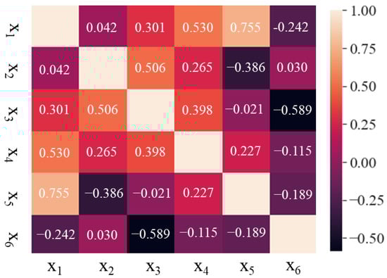 Figure 3 shows the magnitude of the correlation among the characteristic indicators, from which it can be seen that there were significant correlations among some of the selected indicators, for example, the X1 and X4 correlation was 0.530, the X1 and X5 correlation was −0.755, and the X3 and X6 correlation was −0.589. All of the abovementioned phenomena indicate the complexity of the conditions under which the actual rockburst problem occurs, and also confirm that relying only on a single indicator to analyze the rockburst risk is not feasible. As the abovementioned outliers are real in the actual conditions, this paper did not deal with the outliers.